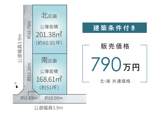 【物件概要】 ●所在地/福井県敦賀市市野々町1丁目 ●交通/JR小浜線「粟野」駅徒歩37分 ●用途地域/第一種住居地域 ●地目/宅地 ●現況/更地 ●土地の権利形態/所有権 ●都市計画/非線引区域 ●建ぺい率/60% ●容積率/160% ●総区画数/2区画 ●今回販売区画数/2区画 ●土地面積168.61.70㎡(約51坪)〜201.38(約60.9坪) ●セットバック/有(北:0.84㎡/南:1.11㎡/) ●販売価格/790万円 ●私道負担の有無/無 ●設備/電気:有、ガス:プロパンガス、水道:公営水道 / 公共下水 ●接道状況/北区画:(西 公道3.9m・間口16.8m)/南区画:(南 公道3.9m・間口11.4m)(西 公道3.9m・間口13.6m) ●その他法令/景観法、宅地造成及び特定盛土等規制法、法22条区域、屋外広告物届出対象路線、環境保全条例 ●引渡予定/相談 ●取引態様/売主 ●<本社>〒520-1121滋賀県高島市勝野1108番地3 ●建設業許可/滋賀県知事許可(特・般-3)第80123号 ●宅地建物取引業者免許/滋賀県知事登録(12)第1267号 ●一級建築士事務所/滋賀県知事登録(カ)第126号