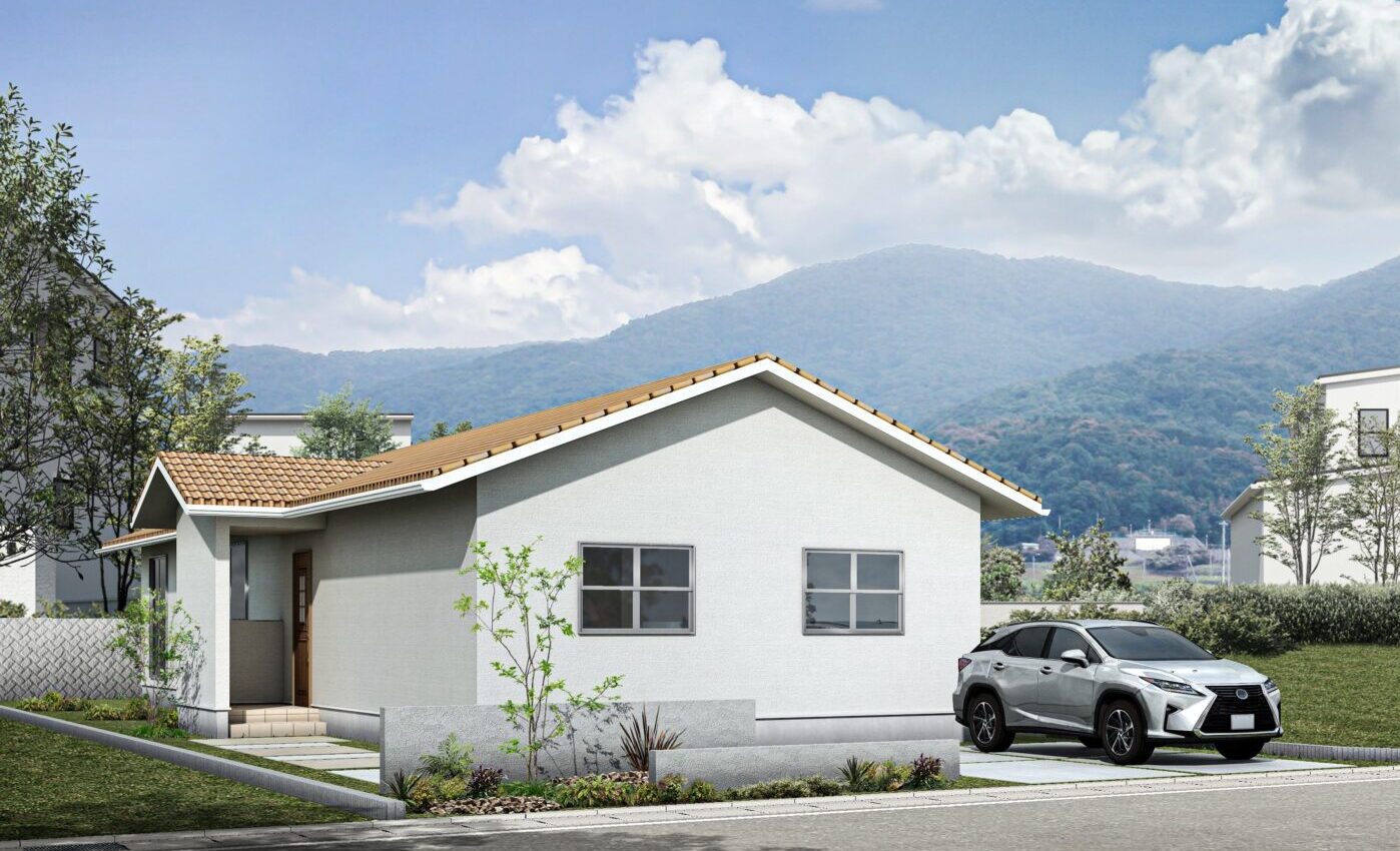 敷地の広さを活かした、北欧テイストの伸びやかな平屋の住まい。ホワイトの外壁に瓦を合わせた温かみのある佇まいが魅力です。27帖の大空間LDKは、南面の大きな窓から陽光がたっぷり注ぐ、明るく開放的な特等席。ワンフロアの利点を活かし、キッチンから室内全体に「自然と視線が届く」設計に。お子様の様子を常に見守れる安心感が、育児中の心にゆとりをもたらします。