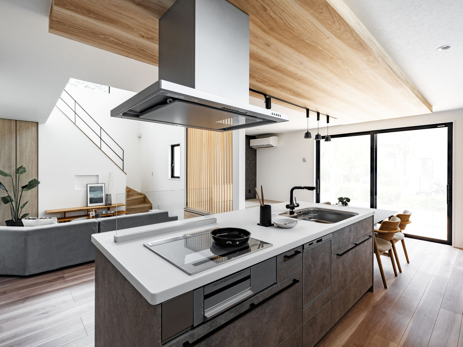 アイランドキッチンで移動しやすく、料理、片付けの流れがスムーズです。キッチンと横並びで家事効率の良いダイニング