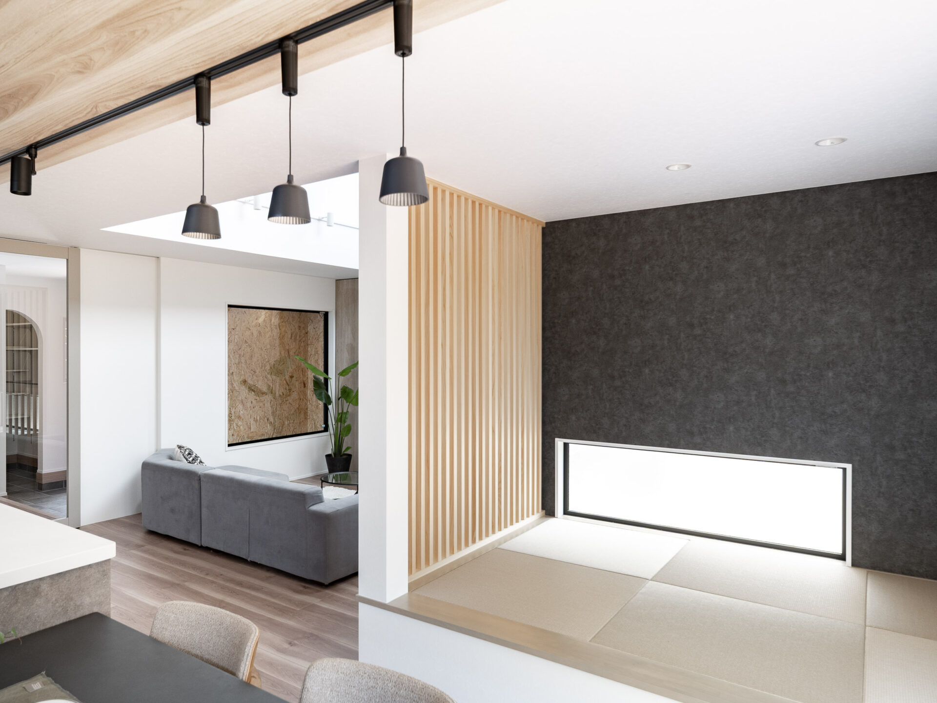 ダイニングの横にはリラックス空間としても活躍する小上がりの畳スペースを設けました。