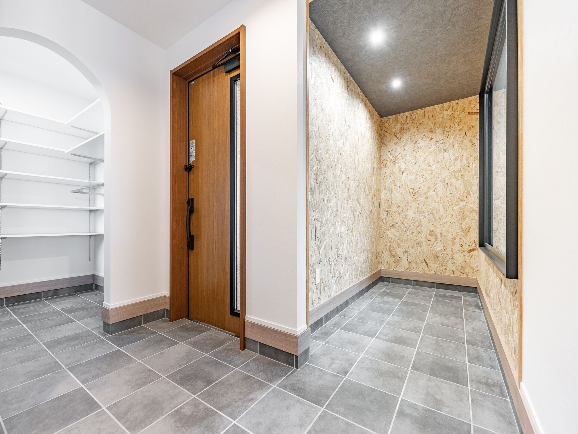 ご主人の趣味であるサーフィンのボードや道具類を収納する部屋を玄関横に配置しました。